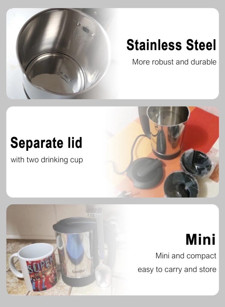 Sonifer SF-2011 ni suluhisho namba moja kwa wasafiri, watu wanaokaa hotelini, au wale wenye mahitaji madogo ya maji ya moto. Ni birika dogo, imara, na lenye nguvu ambalo limeundwa kutosha kwenye begi lako la safari bila usumbufu.